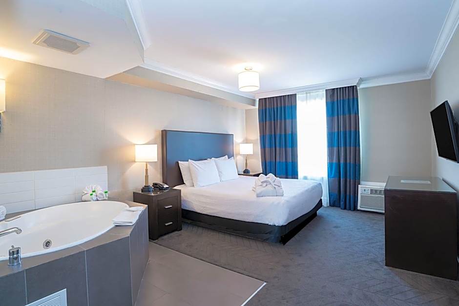 This suite features 1 living room, 1 separate bedroom and 1 bathroom with a bath and free toiletries. The suite has carpeted floors, a seating area with a flat-screen TV with cable channels, air conditioning, a tea and coffee maker, as well as a dining area. The unit has 1 bed.